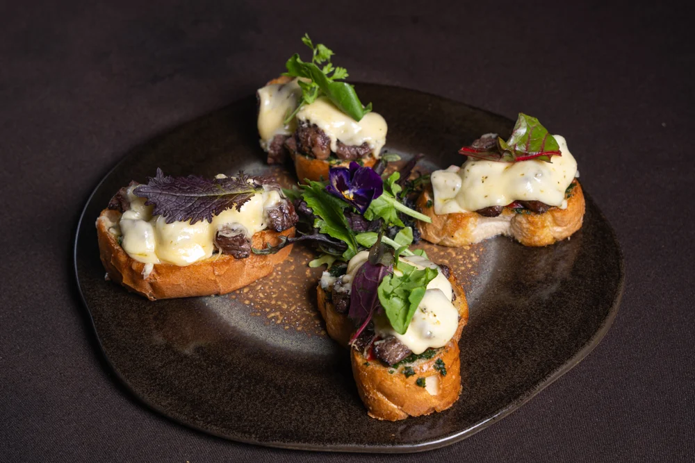 250 gr de lomo a la parrilla con especias de la casa, bañado en una salsa de hongos negros y blancos montado con lámina de panceta de cerdo.